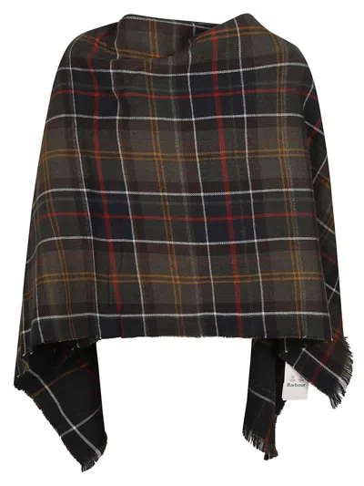 Montieth Check-pattern Frayed Edge Poncho In Multi