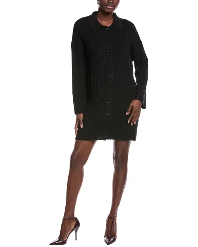 Anastasia Directional Rib Long Sleeve Cotton Sweater Dress In Black