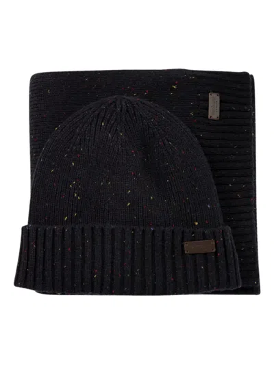 Mens Navy Carlton Fleck Wool-blend Beanie And Scarf Gift Set In Black