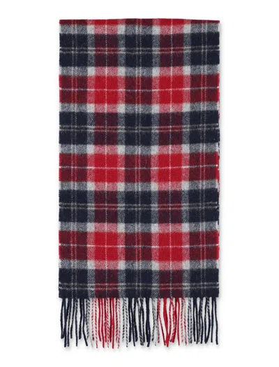 Mens Cranberry Tartan Tartan-print Lambswool Scarf In Blue