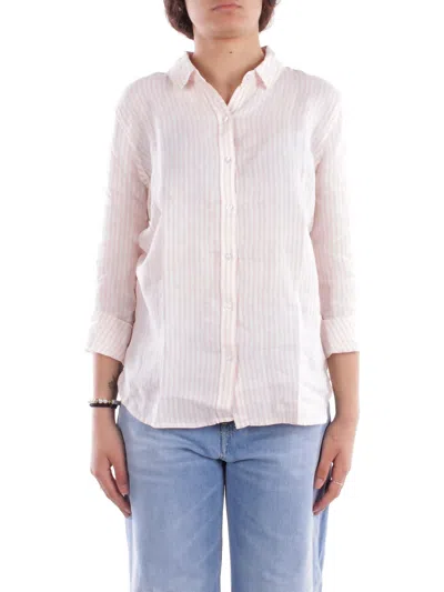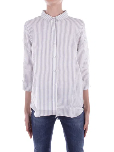 Marine - Linen Striped Shirt In White/light Blue