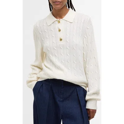 Evie Cable Stitch Polo Sweater In White