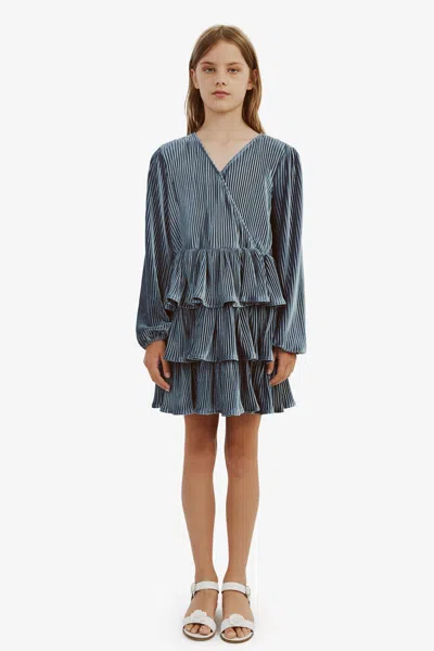Kids' Girl's Radiance Velour Mini Wrap Dress In Steel Blue