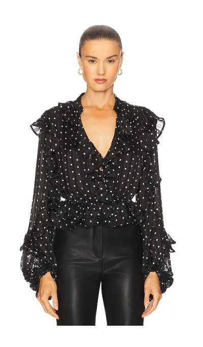 Frill Detail Spot Blouse In Black