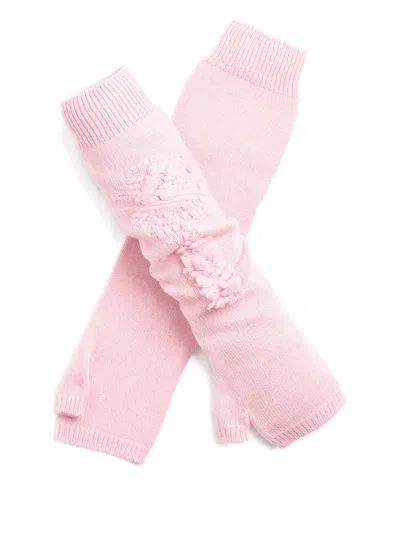 Long Knit Fingerless Gloves In 粉色