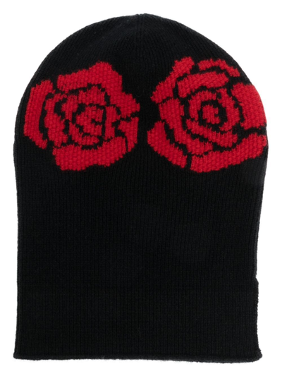 玫瑰刺绣钩编针织套头帽