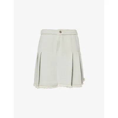Womens Denim Pleated Skirt Denim Pleated Cashmere And Cotton Mini Skirt Xs In Gray