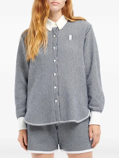 Womens Blue Stripe Striped Floral-print Cashmere And Cotton Shorts
