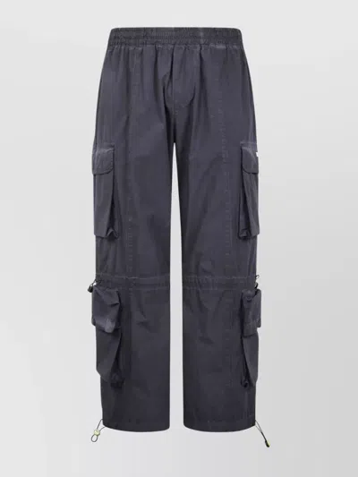 Unisex Cargo Trousers Drawstring Hem In Blue