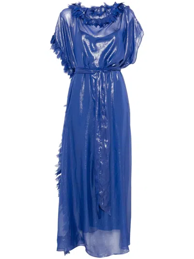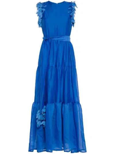 Yara Embellished Belted Maxi Dress In Blue