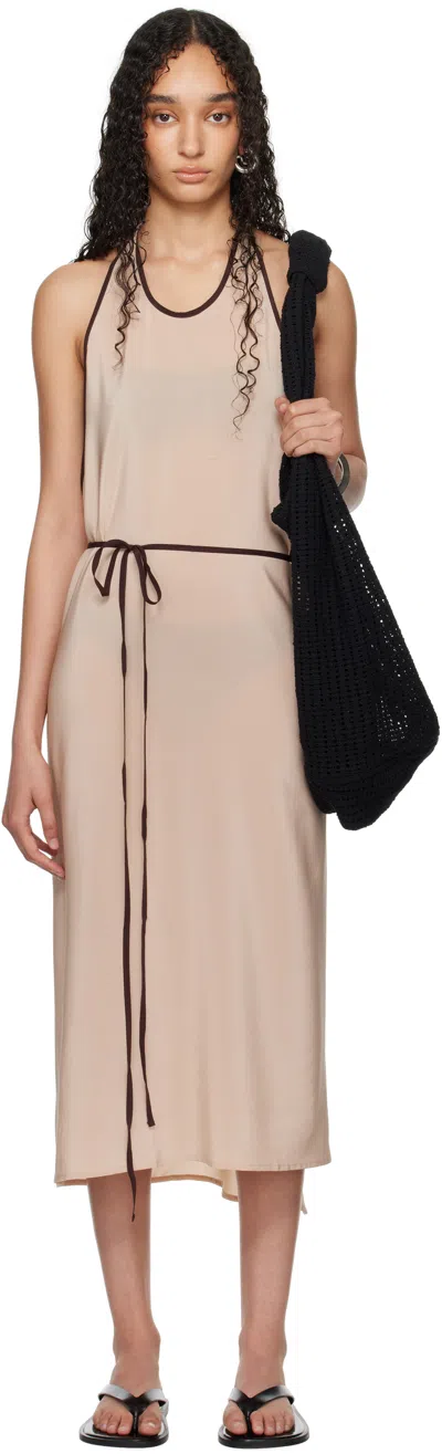 Ssense Exclusive Pink Apron Wrap Midi Dress In Brown