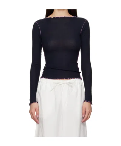 Base Linen Jersey Long Sleeve T-shirt In Blue