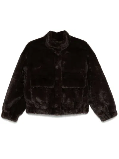Ba & Sh Paros Faux Fur Cropped Jacket In Black