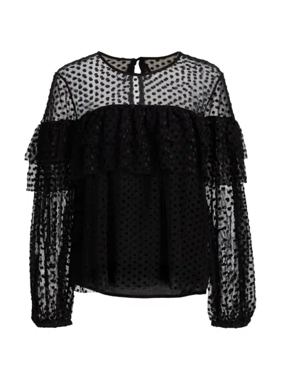 Women's Raff Sheer Swiss Dot Ruffle Blouse In Black
