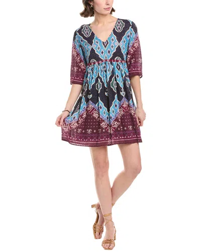 Kanissa Printed V-neck Mini Dress In Brown