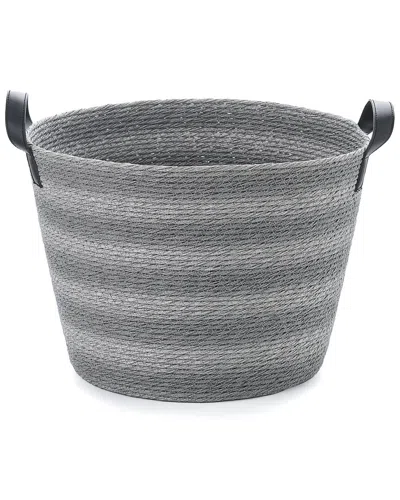 Set Of 3 Round Faux Wicker Weave Baskets With Ear Handles In Black
