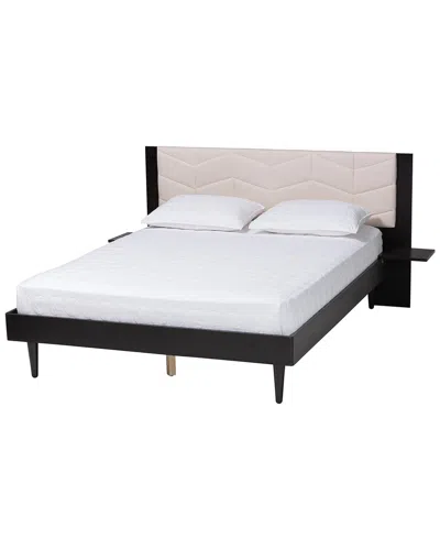 Adriano Transitional Fabric & Wood Queen Size Bed With Built-in Side Tables In Beige