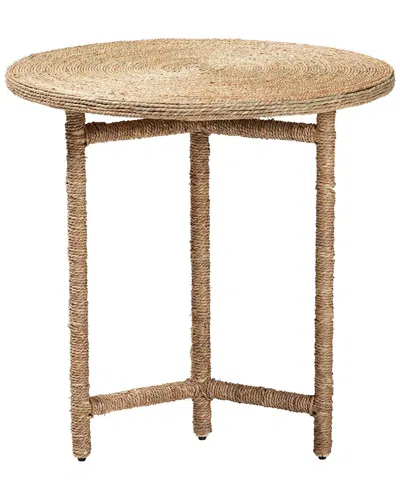 Avalon Scallop Rattan Pedestal Side Table In Brown