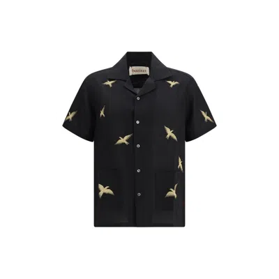 Cotton Shirt Short Sleeves Camp Collar Embroidery In Yellow
