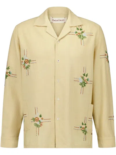 Silk Cabin Shirt Long Sleeves Floral Embroidery In Yellow