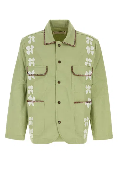 Cotton Blazer Long Sleeves Embroidered Pockets In Green
