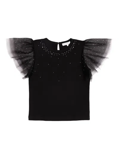 Kids' Tulle-sleeve Top In Black