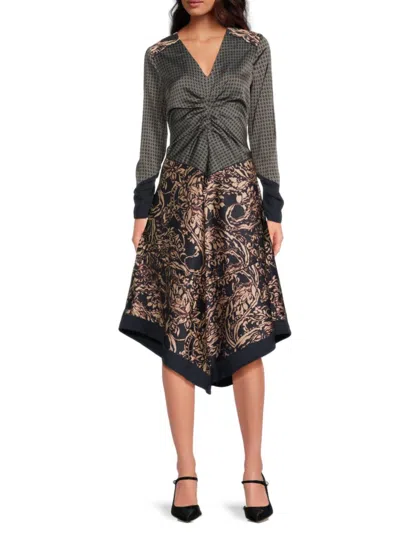 Women's Mixed Media Ruched Midi-dress In Brown