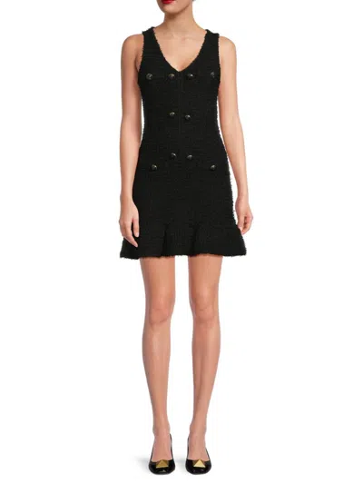 Women's Tweed Double-breasted Sleeveless Minidress In Black