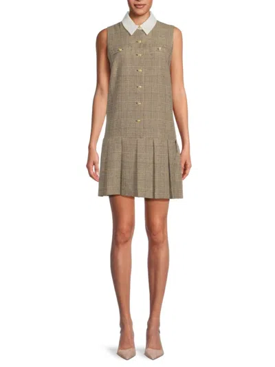 Women's Plaid Pleated Drop Waist Minidress In Green