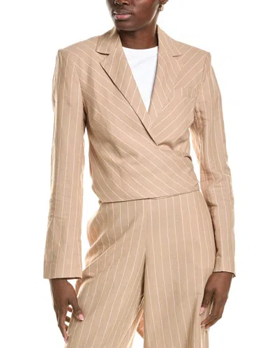 Cropped Front Tie Linen-blend Jacket In Brown