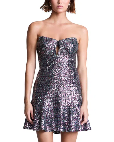 Strapless Lace-inset Pleated Mini Dress In Multi