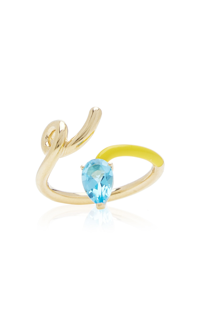 Baby Vine Enameled 9k Yellow Gold; Silver Crystal Ring In Blue