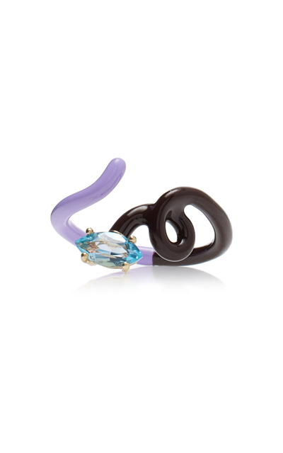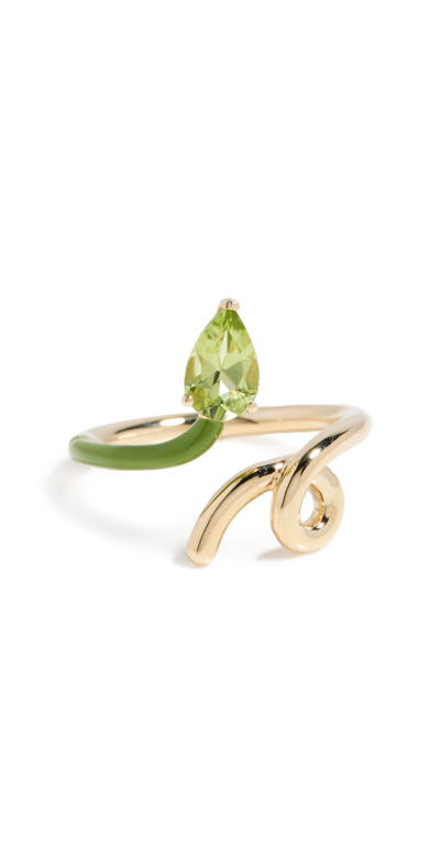Baby Vine Enameled 9k Yellow Gold Peridot Ring In Purple/green