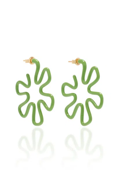 Pistachio 9k Gold; Silver; And Enamel Earrings In Green