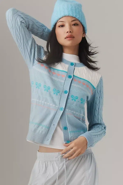 Ally Bow Crewneck Cardigan Sweater In Blue