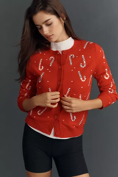Emmeline Collared Cardigan Sweater In Red