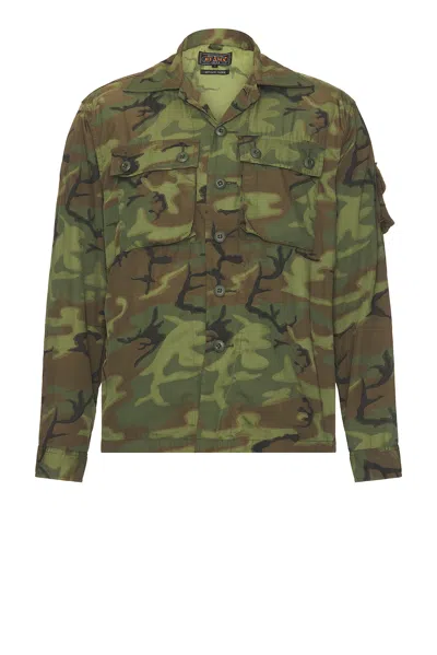 Mesh Camo Jacquard Mapping Print Shirt In Green