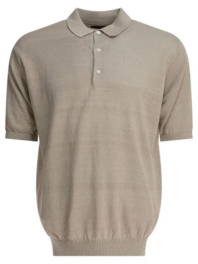 Wool Polo Shirt Featuring Ribbed Cuffs And Hem In Brown