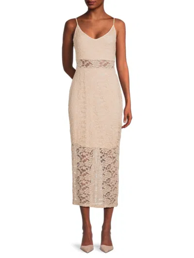 Lace Midi Dress In Taupe
