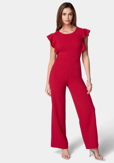 Flutter Sleeve Core Jumpsuit In Red