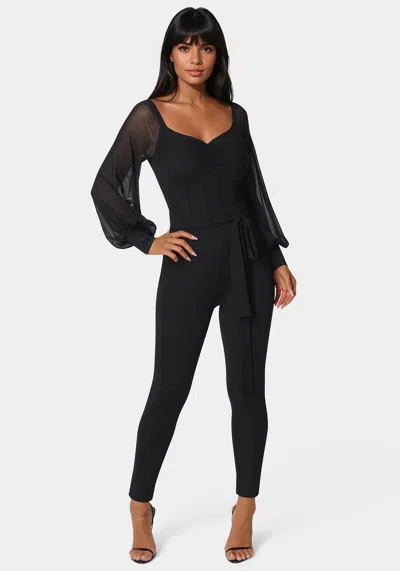 Crystal Cuff Sheer Sleeve Romper In Jet Black
