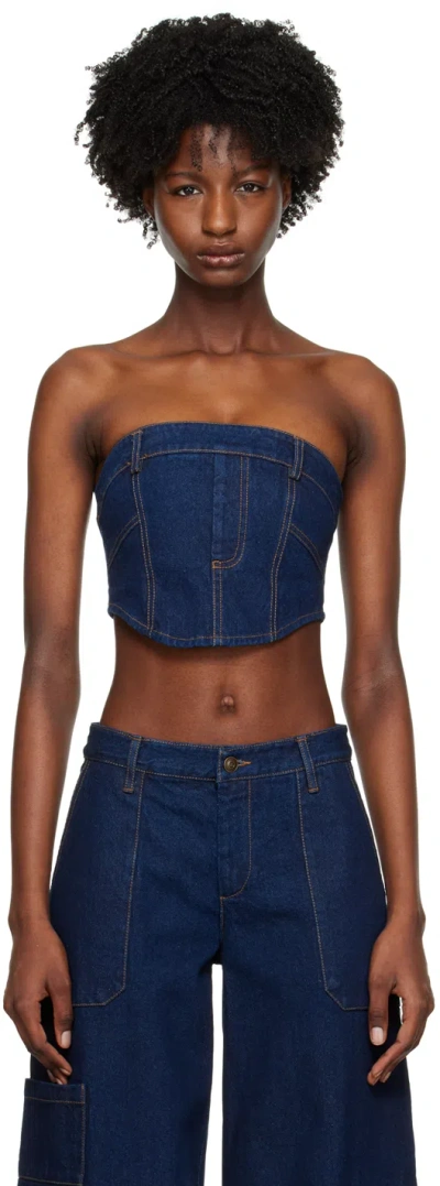 Blue Roxanne Corset Top In Denim