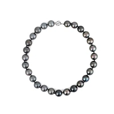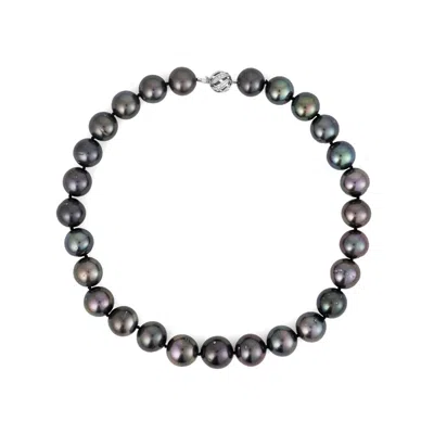 Round Cultured Black Tahitian Pearl Graduated Strand Necklace In 14k White Gold