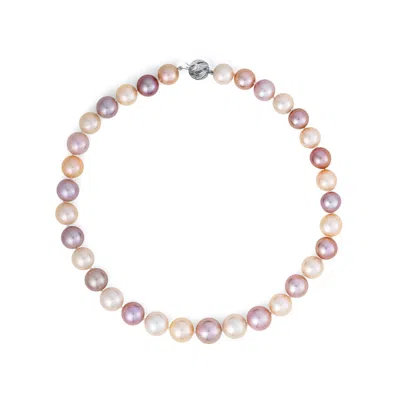 Round Multicolored Cultured Freshwater Pearl Graduated Strand Necklace In 14k White Gold