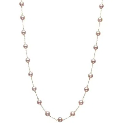 Aaa Freshwater Cultured 6.0mm-7.0mm Pink Pearls 18" Inchesstation Necklace In 14k Yellow Go In Multi
