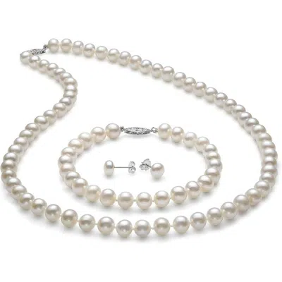 Aaa Freshwater Pearl Jewelry Set In 14k Yellow Gold In White