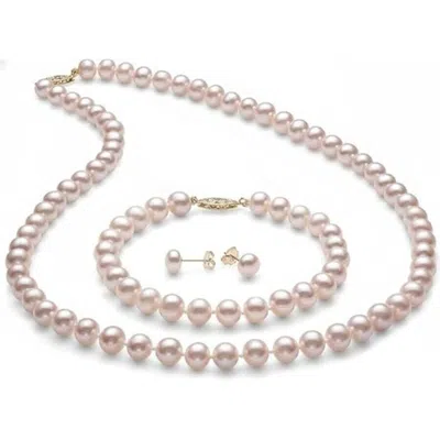 Aaa Freshwater Pearl Jewelry Set In 14k Yellow Gold In Pink
