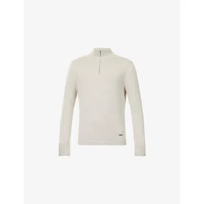 Mens Pebble Funnel-neck Half-zip Knitted Sweater Xxl In Gray