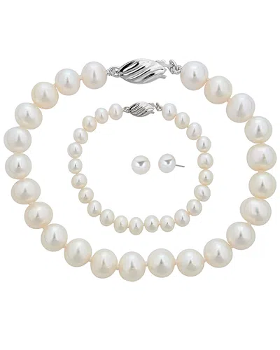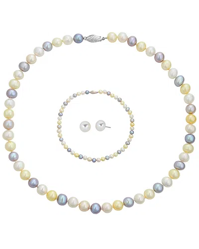 Silver 9-10mm Freshwater Pearl Necklace, Earrings, & Bracelet Set