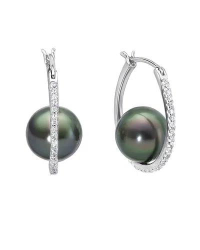 Silver 120-11mm Freshwater Pearl Cz Earrings